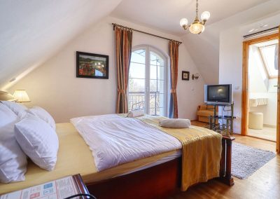Eger csodálatos panorámájában gyönyörködhet 35 nm-es szobánk erkélyéről. Az esti lazulás is garantált a saját pezsgőkádban.