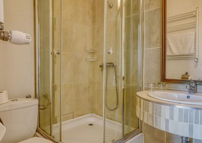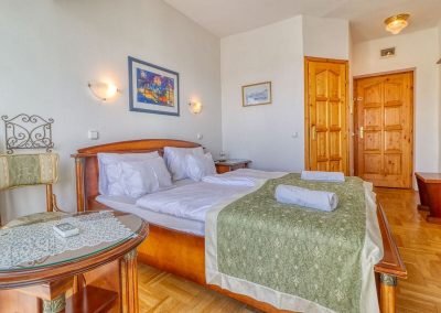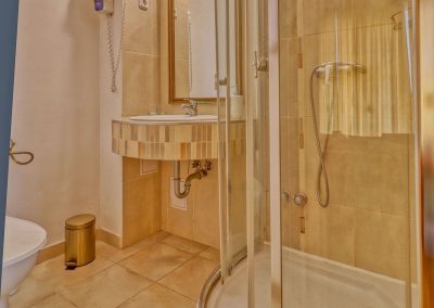 Standard zuhanyozós szobáink tágasak, világosak és kényelmesek. Parkettázott szobáinkat minőségi bútorokkal, visszafogott eleganciával rendeztük be.