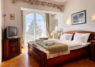 Eger csodálatos panorámájában gyönyörködhet 35 nm-es szobánk erkélyéről. Az esti lazulás is garantált a saját pezsgőkádban.